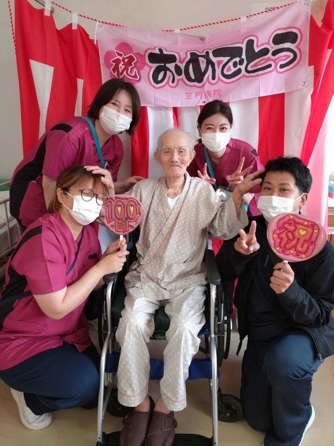 当病棟に入院中の患者様の百歳の誕生日に同席させてもらいました。